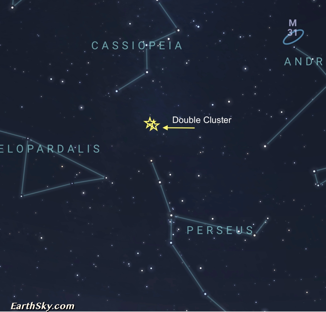 The most interesting thing about the Perseus double cluster is that each cluster is relatively close to one another. One is 7,640 light years from us and the other is 7,460 light years away. Both are barreling toward us at 24 miles-per-second. In the half-hour it took me to write this post, they’ll be 43,200 miles closer to us. Don’t bother looking to see if they’re bigger from one night to the next. They are, but they aren’t.