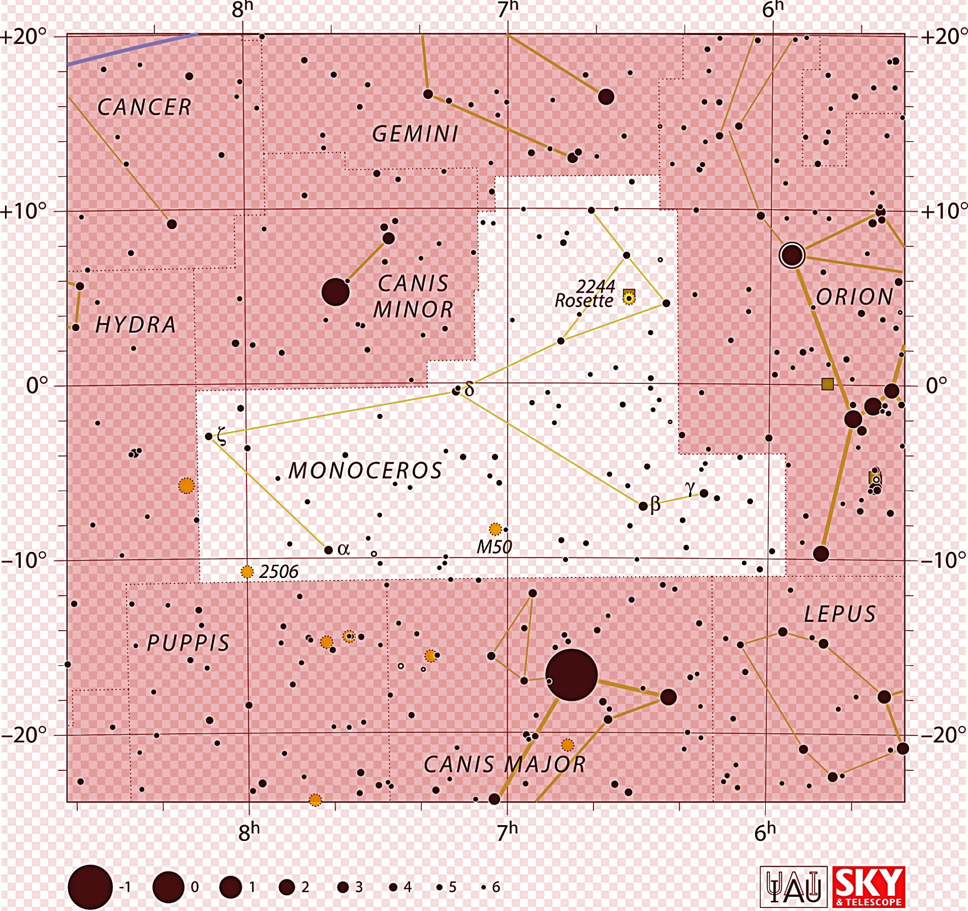 Photo credit to Sky & Telescope for its map of Monoceros.