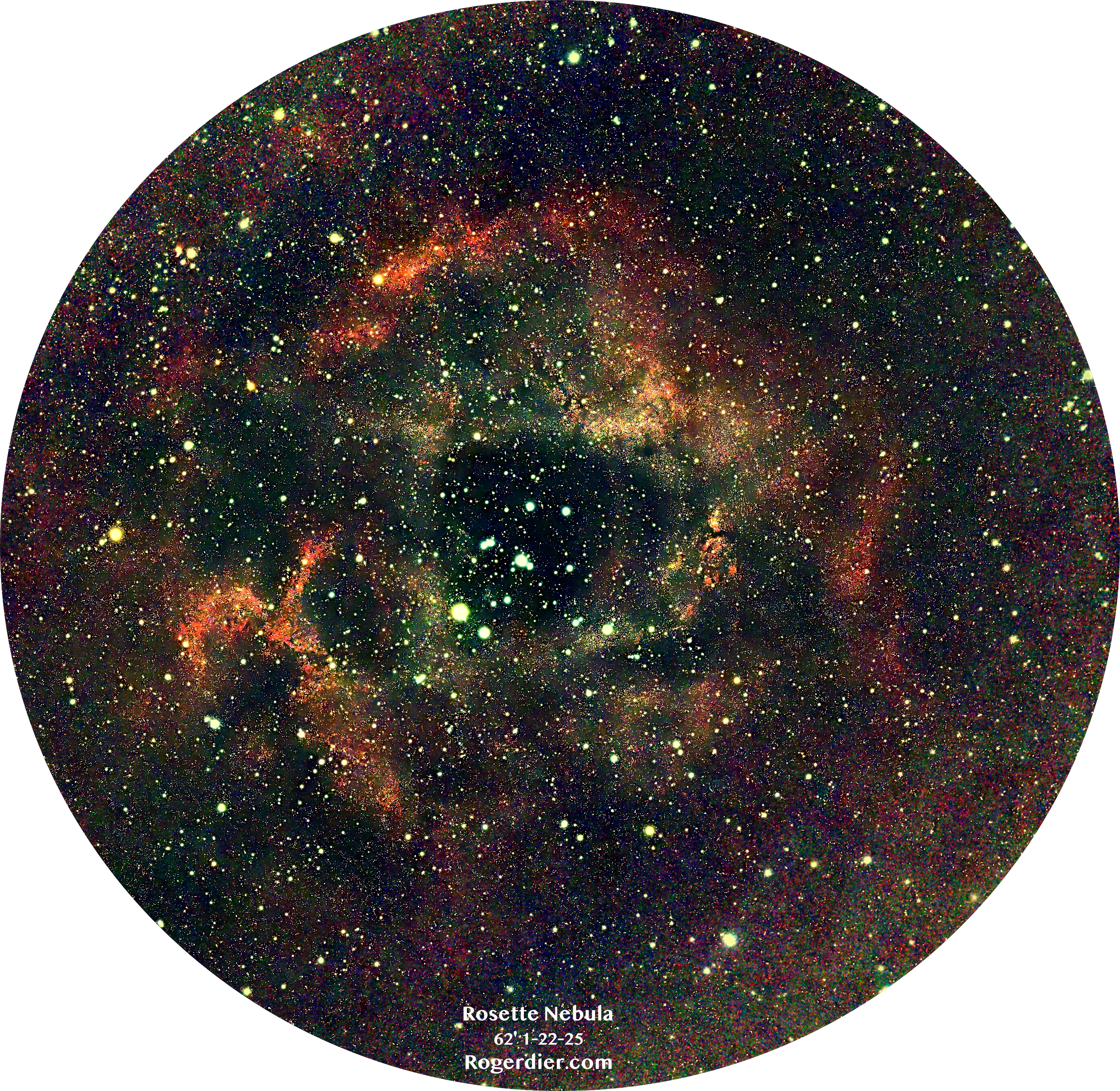 On a recent night that would chill emperor penguins of the Antarctic, the little wonder-scope that is the SeeStar S50 stood outside our frosty family room window and went to work. Grinding away in minus 8 Fahrenheit temperatures, the S50 with its modest two-inch triple lens spent about two hours photographing the sky in a wider-than-normal circular pattern. The object of its sensors? The Rosette nebula in the dim, forgettable rest stop of a constellation called Monoceros.