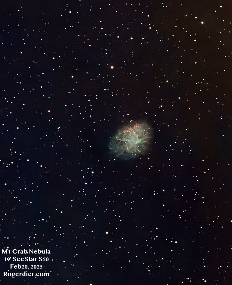 I took a seat in the vehicle and told SeeStar to find and photograph Messier No. 1, or M1 as it’s known in the community. Once upon a time in 1054, when it was first noticed in both the night and day skies by sky-watching cultures, it was a fantastic anomaly. The new star in Taurus the Bull may have been humankind’s first recorded Nova. Fortunately for us, living nearly a millennium later, written language had taken hold. So has storage of documents.