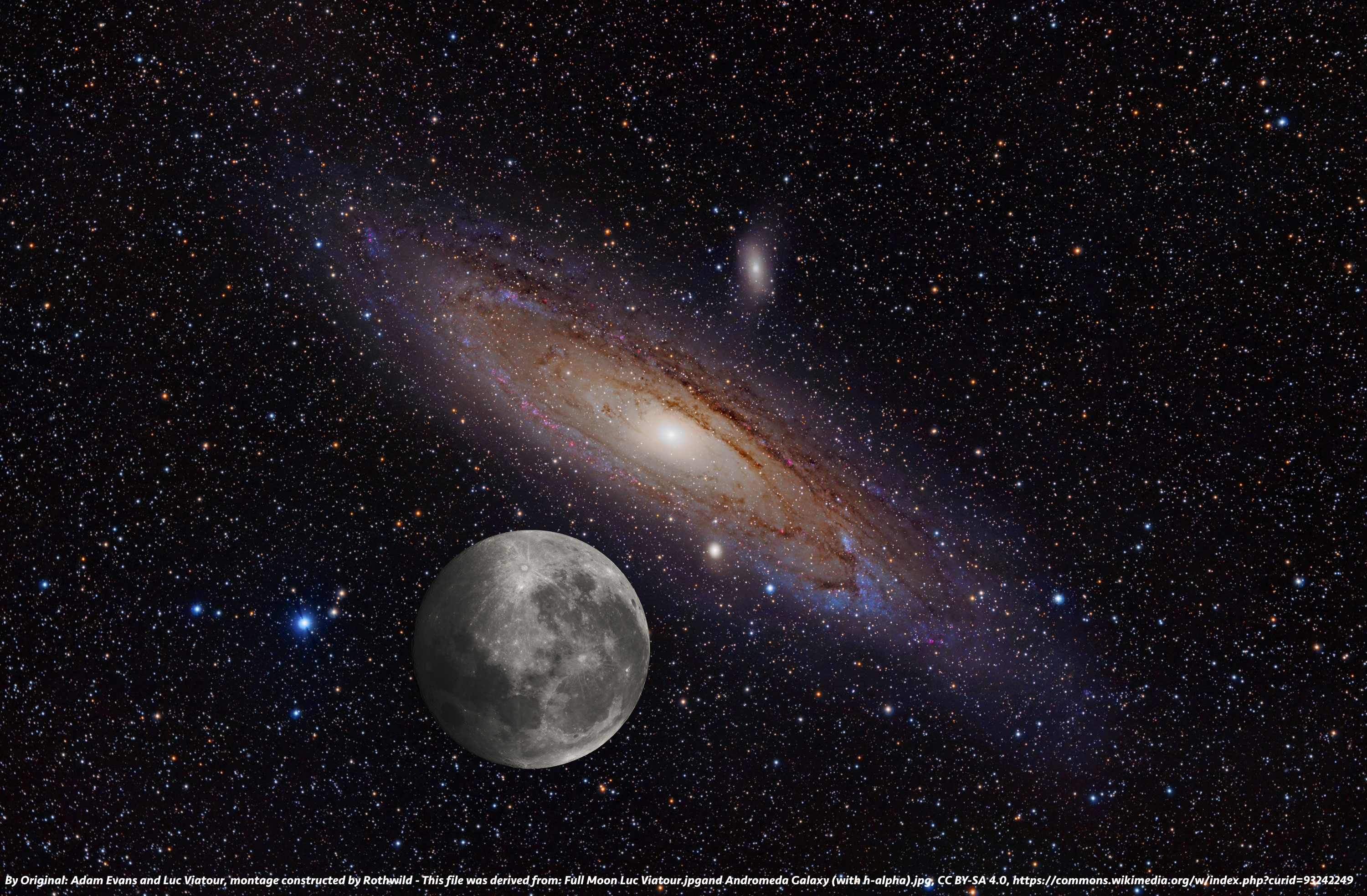 Adam Evans and Luc Viatour teamed up to create an image comparing the visual sizes of the moon with M31.